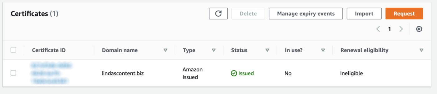 Navigate to Certificate Manager, and follow Step 3 on the same page as above (https://aws.amazon.com/premiumsupport/knowledge-center/cloudfront-serve-static-website/). Note that the docs don’t seem to mention Certificate Manager. It took a minute to “Request” the certificate, but a few hours before the Status became “Issued”. Make sure that your Route 53 hosted zone has a CNAME record, which should have been created when you clicked on the button to do so, when requesting the Certificate.